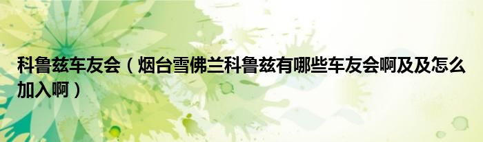 1,烟台雪佛兰科鲁兹有哪些车友会啊 怎么加入啊:我在烟台看见有科鲁兹车友会呀,他们和烟台华洋世纪经常合作主办一些公益活动,如红粉笔计划,爱心送考生活动,到烟台华洋世纪问问,不就知道咯,我朋友说只要是科鲁兹车友会会员到烟台华洋做保养即可享受工时费用8折咯