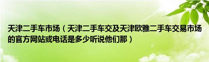 大家好,小常来为大家解答以下问题,对于天津二手车市场,天津二手车交及天津欧雅二手车交易市场的官方网站或电话是多少听说他们那很多人还不知道,今天让我们一起来看看吧!