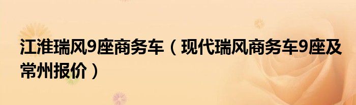 大家好,小常来为大家解答以下问题,对于江淮瑞风9座商务车,现代瑞风商务车9座及常州报价很多人还不知道,今天让我们一起来看看吧!