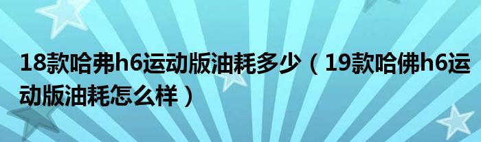 大家好,阳阳来为大家讲解下。18款哈弗h6运动版油耗多少,19款哈佛h6运动版油耗怎么样很多人还不知道,现在让我们一起来看看吧!
