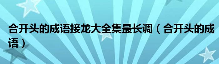 大家好,小晋来为大家解答以下问题,关于合开头的成语接龙大全集最长调,合开头的成语很多人还不知道,今天让我们一起来看看吧!