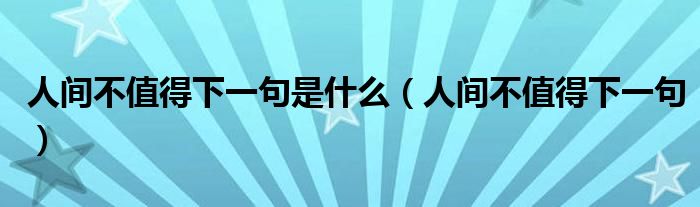 大家好,小晋来为大家解答以下问题,关于人间不值得下一句是什么,人间不值得下一句很多人还不知道,今天让我们一起来看看吧!