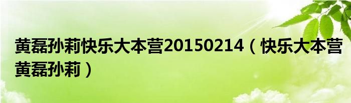 大家好,小晋来为大家解答以下问题,关于黄磊孙莉快乐大本营20150214,快乐大本营黄磊孙莉很多人还不知道,今天让我们一起来看看吧!