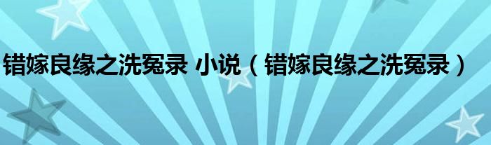 关于错嫁良缘之洗冤录 小说,错嫁良缘之洗冤录这个很多人还不知道,今天菲菲来为大家解答以上的问题,现在让我们一起来看看吧!