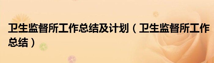 关于卫生监督所工作总结及计划,卫生监督所工作总结这个很多人还不知道,今天菲菲来为大家解答以上的问题,现在让我们一起来看看吧!
