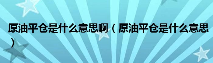 关于原油平仓是什么意思啊,原油平仓是什么意思这个很多人还不知道,今天菲菲来为大家解答以上的问题,现在让我们一起来看看吧!