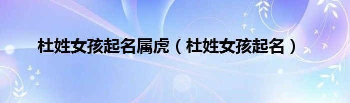 关于杜姓女孩起名属虎,杜姓女孩起名这个很多人还不知道,今天菲菲来为大家解答以上的问题,现在让我们一起来看看吧!
