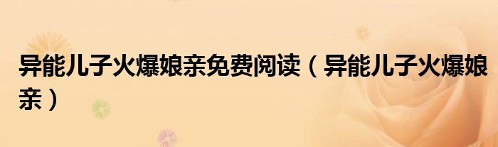 异能儿子火爆娘亲免费阅读(异能儿子火爆娘亲)