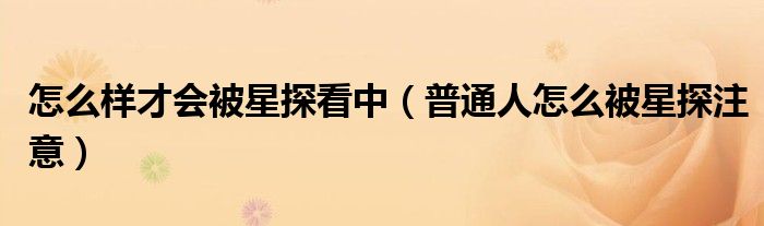 关于怎么样才会被星探看中,普通人怎么被星探注意这个很多人还不知道,今天菲菲来为大家解答以上的问题,现在让我们一起来看看吧!
