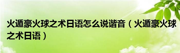 关于火遁豪火球之术日语怎么说谐音,火遁豪火球之术日语这个很多人还不知道,今天菲菲来为大家解答以上的问题,现在让我们一起来看看吧!