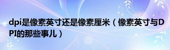 关于dpi是像素英寸还是像素厘米,像素英寸与DPI的那些事儿这个很多人还不知道,今天菲菲来为大家解答以上的问题,现在让我们一起来看看吧!