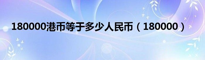 关于180000港币等于多少人民币,180000这个很多人还不知道,今天菲菲来为大家解答以上的问题,现在让我们一起来看看吧!