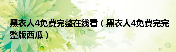黑衣人4免费完整在线看(黑衣人4免费完完整版西瓜)