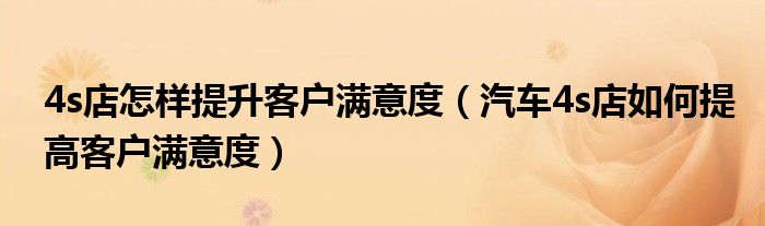 关于4s店怎样提升客户满意度,汽车4s店如何提高客户满意度这个很多人还不知道,今天菲菲来为大家解答以上的问题,现在让我们一起来看看吧!