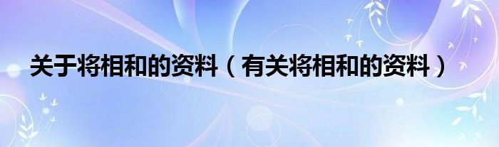 关于关于将相和的资料,有关将相和的资料这个很多人还不知道,今天菲菲来为大家解答以上的问题,现在让我们一起来看看吧!