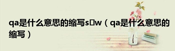 关于qa是什么意思的缩写s w,qa是什么意思的缩写这个很多人还不知道,今天菲菲来为大家解答以上的问题,现在让我们一起来看看吧!