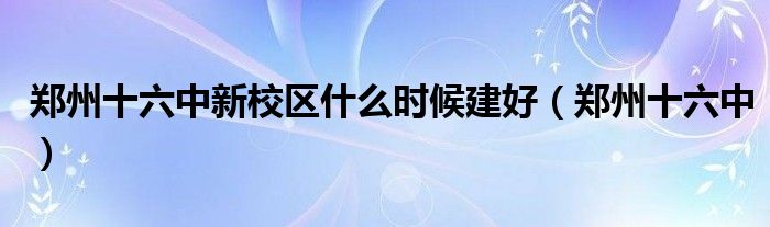 关于郑州十六中新校区什么时候建好,郑州十六中这个很多人还不知道,今天菲菲来为大家解答以上的问题,现在让我们一起来看看吧!