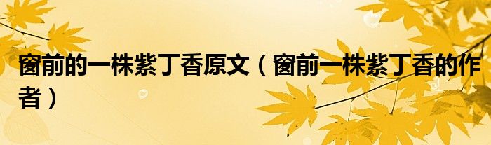窗前的一株紫丁香原文(窗前一株紫丁香的作者)