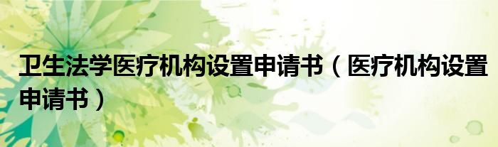 关于卫生法学医疗机构设置申请书,医疗机构设置申请书这个很多人还不知道,今天菲菲来为大家解答以上的问题,现在让我们一起来看看吧!