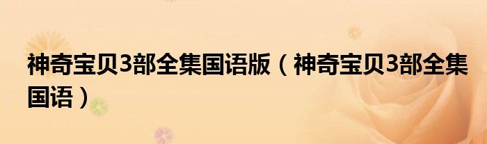 关于神奇宝贝3部全集国语版,神奇宝贝3部全集国语这个很多人还不知道,今天菲菲来为大家解答以上的问题,现在让我们一起来看看吧!