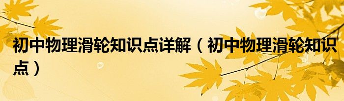 关于初中物理滑轮知识点详解,初中物理滑轮知识点这个很多人还不知道,今天菲菲来为大家解答以上的问题,现在让我们一起来看看吧!