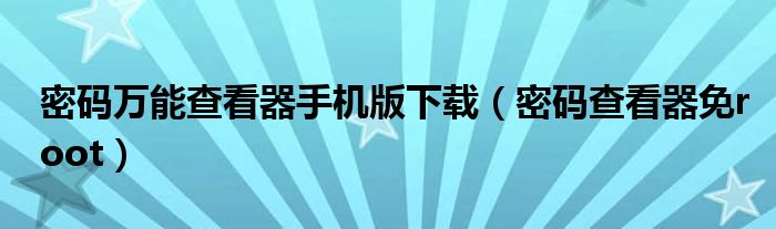 大家好,小晋来为大家解答以下问题,关于密码万能查看器手机版下载,密码查看器免root很多人还不知道,今天让我们一起来看看吧!