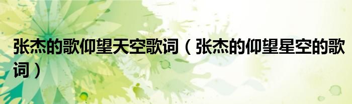 关于张杰的歌仰望天空歌词,张杰的仰望星空的歌词这个很多人还不知道,今天菲菲来为大家解答以上的问题,现在让我们一起来看看吧!