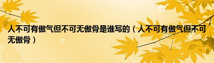 关于人不可有傲气但不可无傲骨是谁写的,人不可有傲气但不可无傲骨这个很多人还不知道,今天菲菲来为大家解答以上的问题,现在让我们一起来看看吧!