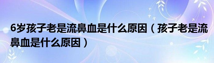 关于6岁孩子老是流鼻血是什么原因,孩子老是流鼻血是什么原因这个很多人还不知道,今天菲菲来为大家解答以上的问题,现在让我们一起来看看吧!