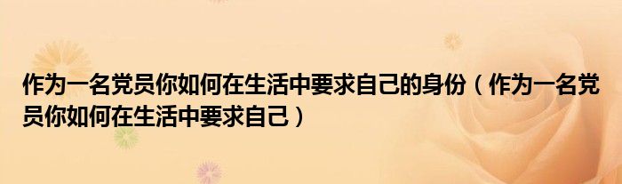 关于作为一名党员你如何在生活中要求自己的身份,作为一名党员你如何在生活中要求自己这个很多人还不知道,今天菲菲来为大家解答以上的问题,现在让我们一起来看看吧!