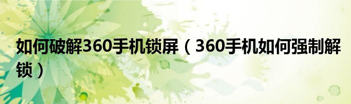 大家好,小晋来为大家解答以下问题,关于如何破解360手机锁屏,360手机如何强制解锁很多人还不知道,今天让我们一起来看看吧!
