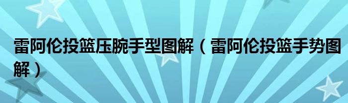 关于雷阿伦投篮压腕手型图解,雷阿伦投篮手势图解这个很多人还不知道,今天菲菲来为大家解答以上的问题,现在让我们一起来看看吧!