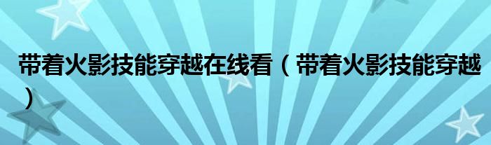 关于带着火影技能穿越在线看,带着火影技能穿越这个很多人还不知道,今天菲菲来为大家解答以上的问题,现在让我们一起来看看吧!