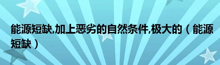 关于能源短缺,加上恶劣的自然条件,极大的,能源短缺这个很多人还不知道,今天菲菲来为大家解答以上的问题,现在让我们一起来看看吧!