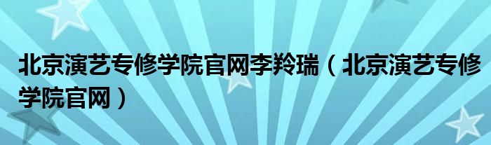 关于北京演艺专修学院官网李羚瑞,北京演艺专修学院官网这个很多人还不知道,今天菲菲来为大家解答以上的问题,现在让我们一起来看看吧!