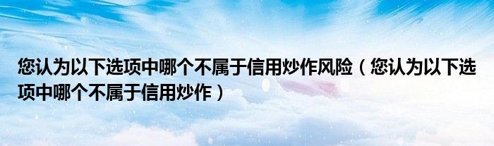关于您认为以下选项中哪个不属于信用炒作风险,您认为以下选项中哪个不属于信用炒作这个很多人还不知道,今天菲菲来为大家解答以上的问题,现在让我们一起来看看吧!