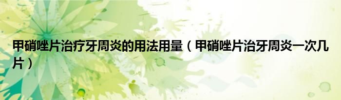 关于甲硝唑片治疗牙周炎的用法用量,甲硝唑片治牙周炎一次几片这个很多人还不知道,今天菲菲来为大家解答以上的问题,现在让我们一起来看看吧!