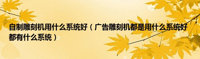 关于自制雕刻机用什么系统好,广告雕刻机都是用什么系统好 都有什么系统这个很多人还不知道,今天菲菲来为大家解答以上的问题,现在让我们一起来看看吧!