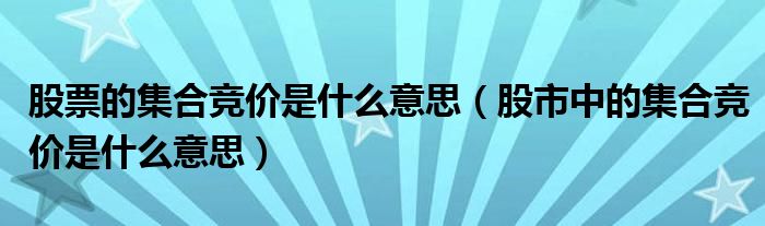 关于股票的集合竞价是什么意思,股市中的集合竞价是什么意思这个很多人还不知道,今天菲菲来为大家解答以上的问题,现在让我们一起来看看吧!