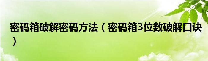 大家好,小晋来为大家解答以下问题,关于密码箱破解密码方法,密码箱3位数破解口诀很多人还不知道,今天让我们一起来看看吧!