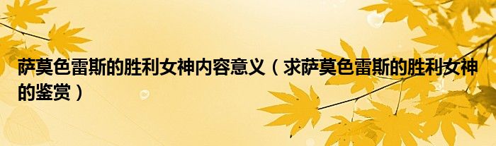关于萨莫色雷斯的胜利女神内容意义,求萨莫色雷斯的胜利女神的鉴赏这个很多人还不知道,今天菲菲来为大家解答以上的问题,现在让我们一起来看看吧!