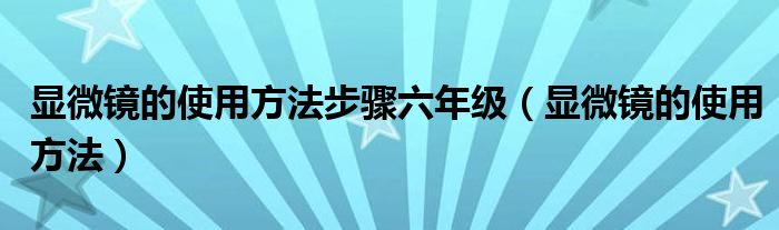关于显微镜的使用方法步骤六年级,显微镜的使用方法这个很多人还不知道,今天菲菲来为大家解答以上的问题,现在让我们一起来看看吧!
