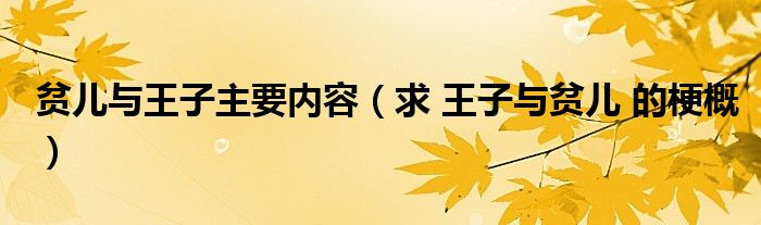 关于贫儿与王子主要内容,求 王子与贫儿 的梗概这个很多人还不知道,今天菲菲来为大家解答以上的问题,现在让我们一起来看看吧!