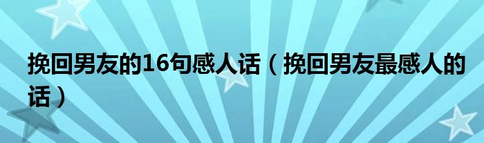 关于挽回男友的16句感人话,挽回男友最感人的话这个很多人还不知道,今天菲菲来为大家解答以上的问题,现在让我们一起来看看吧!