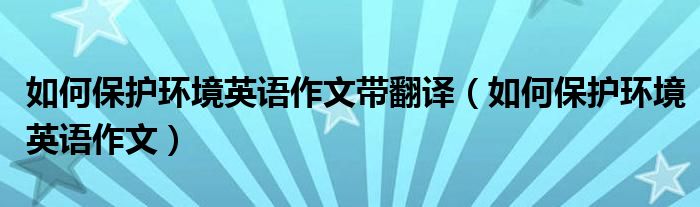 关于如何保护环境英语作文带翻译,如何保护环境英语作文这个很多人还不知道,今天菲菲来为大家解答以上的问题,现在让我们一起来看看吧!