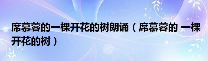 关于席慕蓉的一棵开花的树朗诵,席慕蓉的 一棵开花的树这个很多人还不知道,今天菲菲来为大家解答以上的问题,现在让我们一起来看看吧!