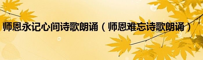 关于师恩永记心间诗歌朗诵,师恩难忘诗歌朗诵这个很多人还不知道,今天菲菲来为大家解答以上的问题,现在让我们一起来看看吧!