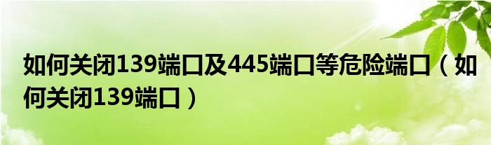 大家好,小晋来为大家解答以下问题,关于如何关闭139端口及445端口等危险端口,如何关闭139端口很多人还不知道,今天让我们一起来看看吧!