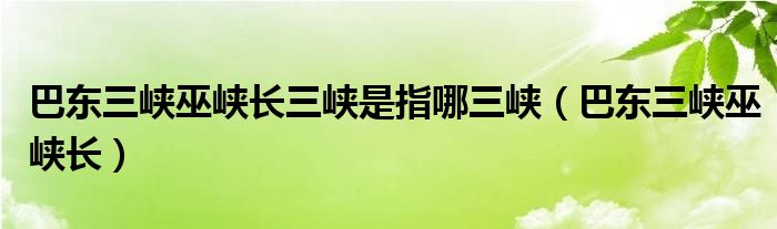 大家好,小晋来为大家解答以下问题,关于巴东三峡巫峡长三峡是指哪三峡,巴东三峡巫峡长很多人还不知道,今天让我们一起来看看吧!