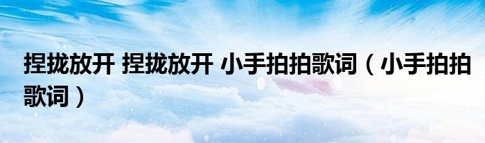 关于捏拢放开 捏拢放开 小手拍拍歌词,小手拍拍歌词这个很多人还不知道,今天菲菲来为大家解答以上的问题,现在让我们一起来看看吧!